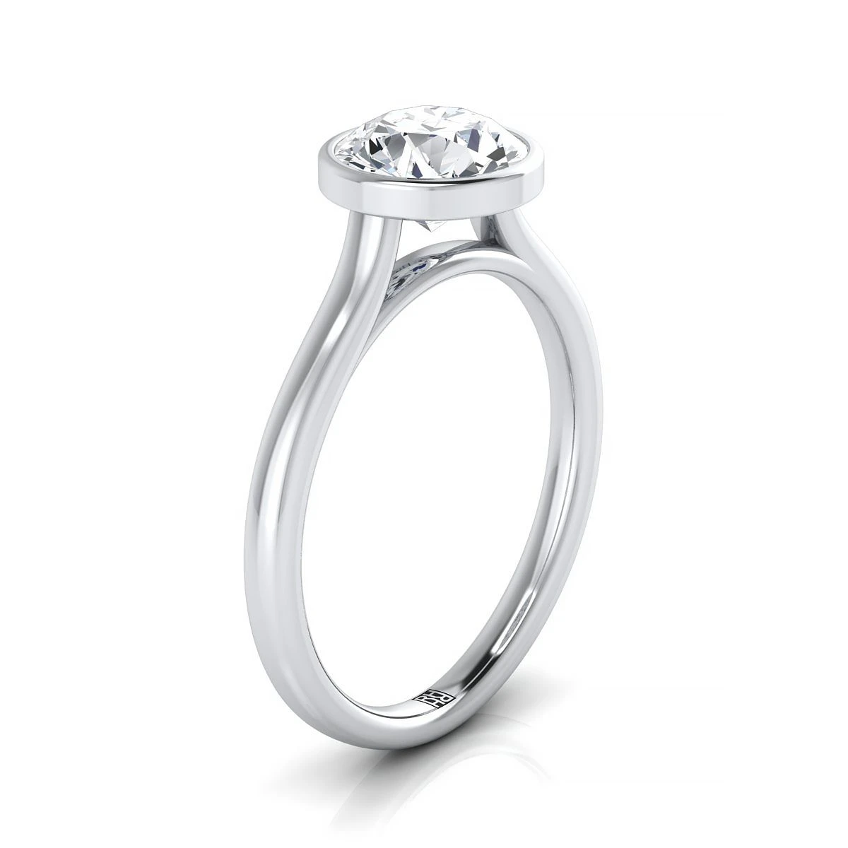 18K White Gold Round Brilliant Citrine Simple Bezel Solitaire Engagement Ring
