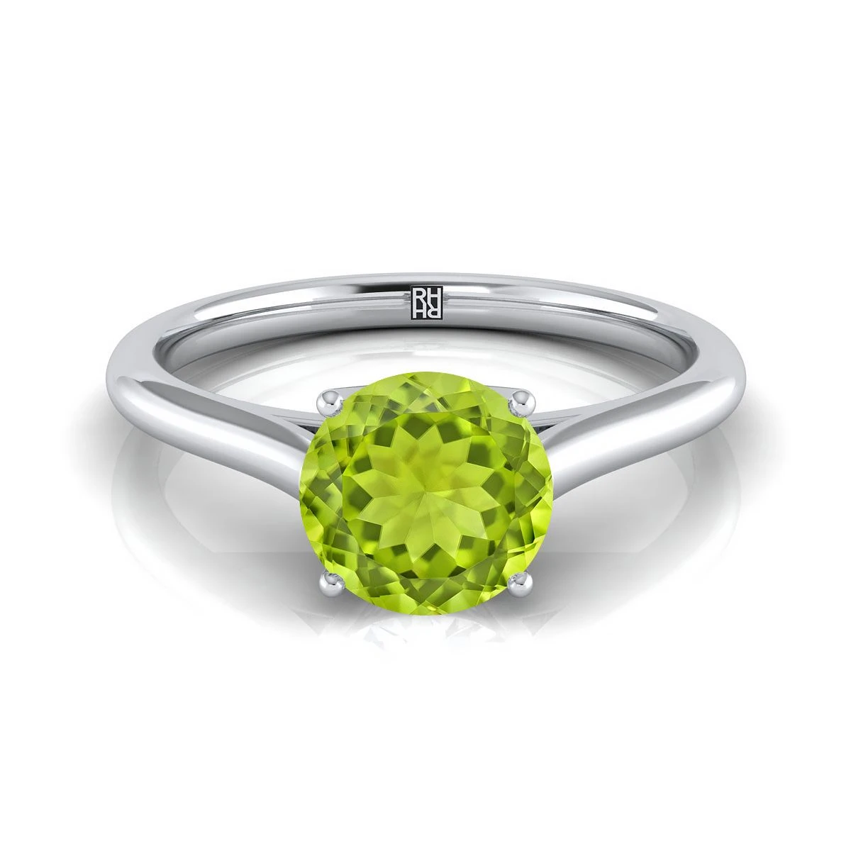 18K White Gold Round Brilliant Peridot Cathedral Style Comfort Fit Solitaire Engagement Ring
