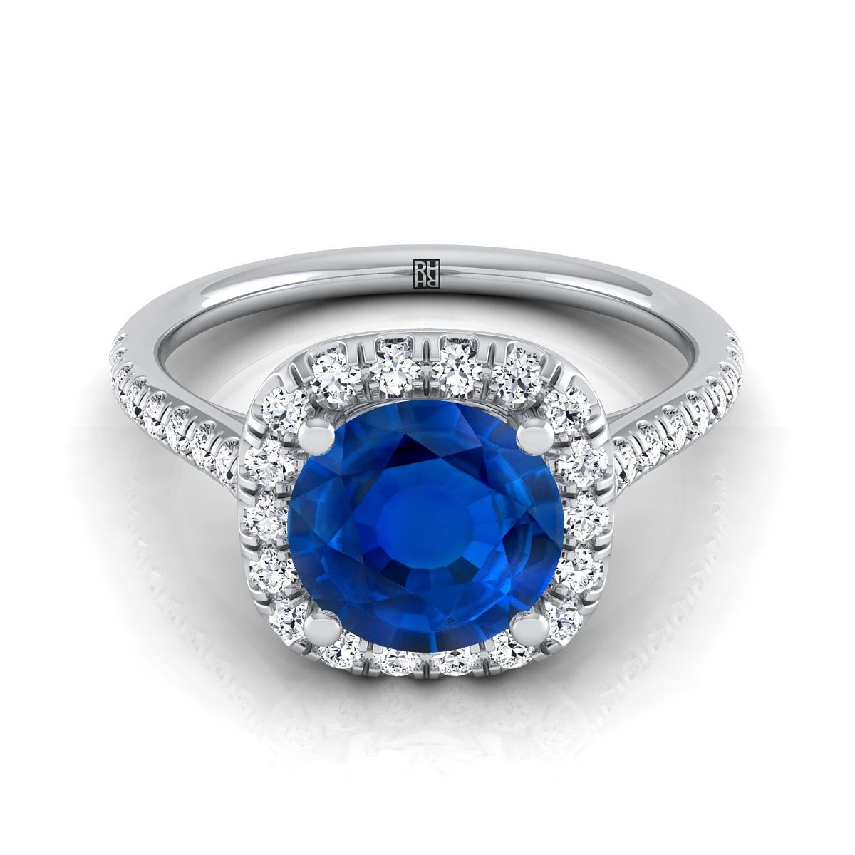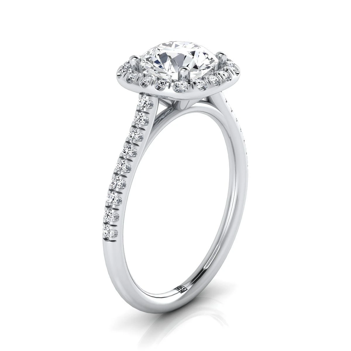 18K White Gold Round Brilliant Sapphire Simple Prong Set Halo Engagement Ring -1/3ctw