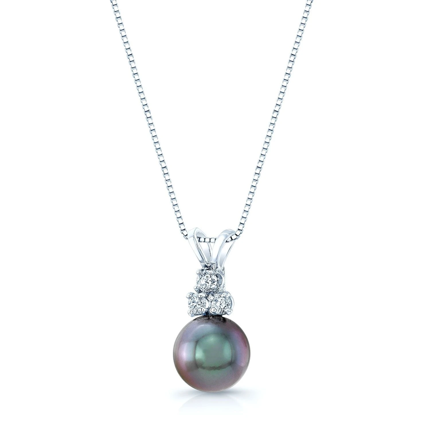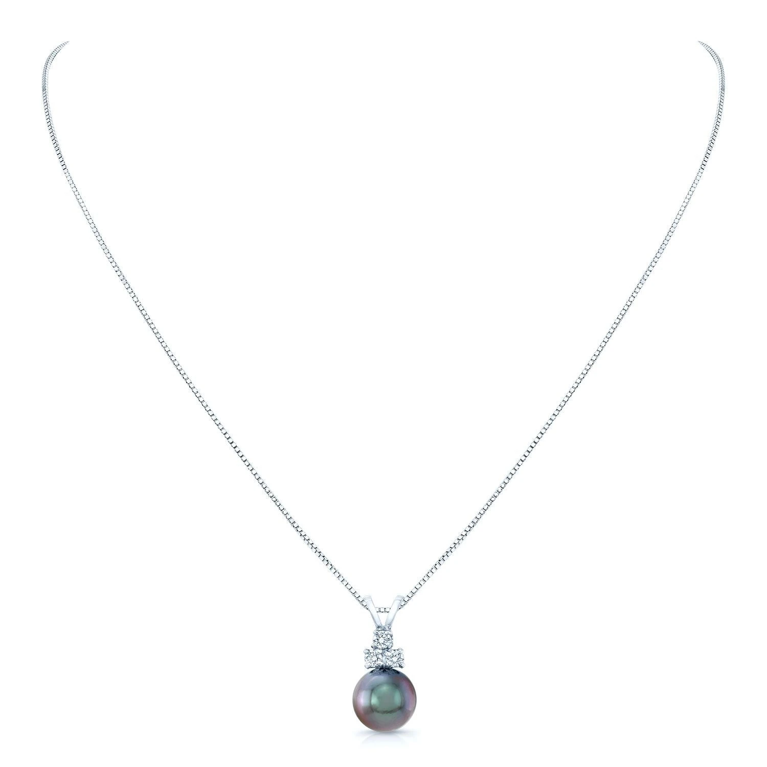 14kw 9-10mm Blk Tahitian Pearl 3rb=1/8ctw Pendant 17in Box Chain Min. 0.13
