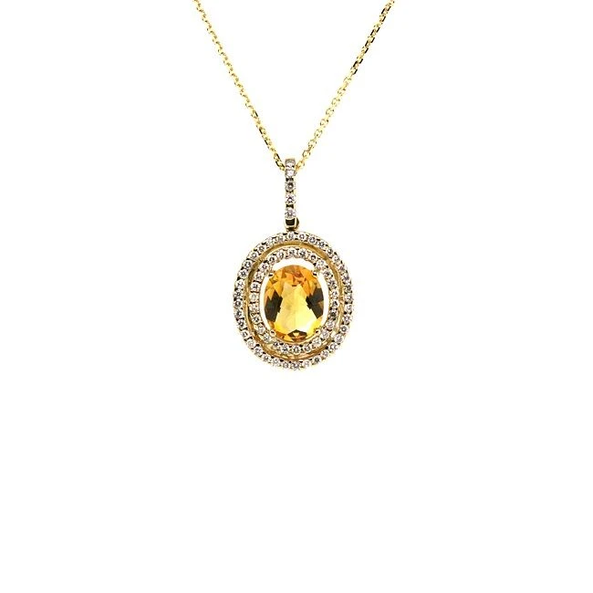 14k Yellow Gold Pendant With 1 Oval Checkerboard Citrine (si)measuring 9x7mm(1.95ct) And 67 Round Brilliant Diamonds Weighing 0.45 Carats On A 17 Inch Baby Curb Chain