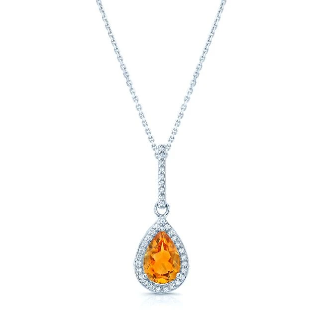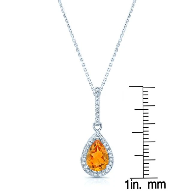 14k White Gold Pendant With One Pear Shape 9x6mm Citrine And 34 Brilliant Cut Diamonds Weighing 1/6 Ctw