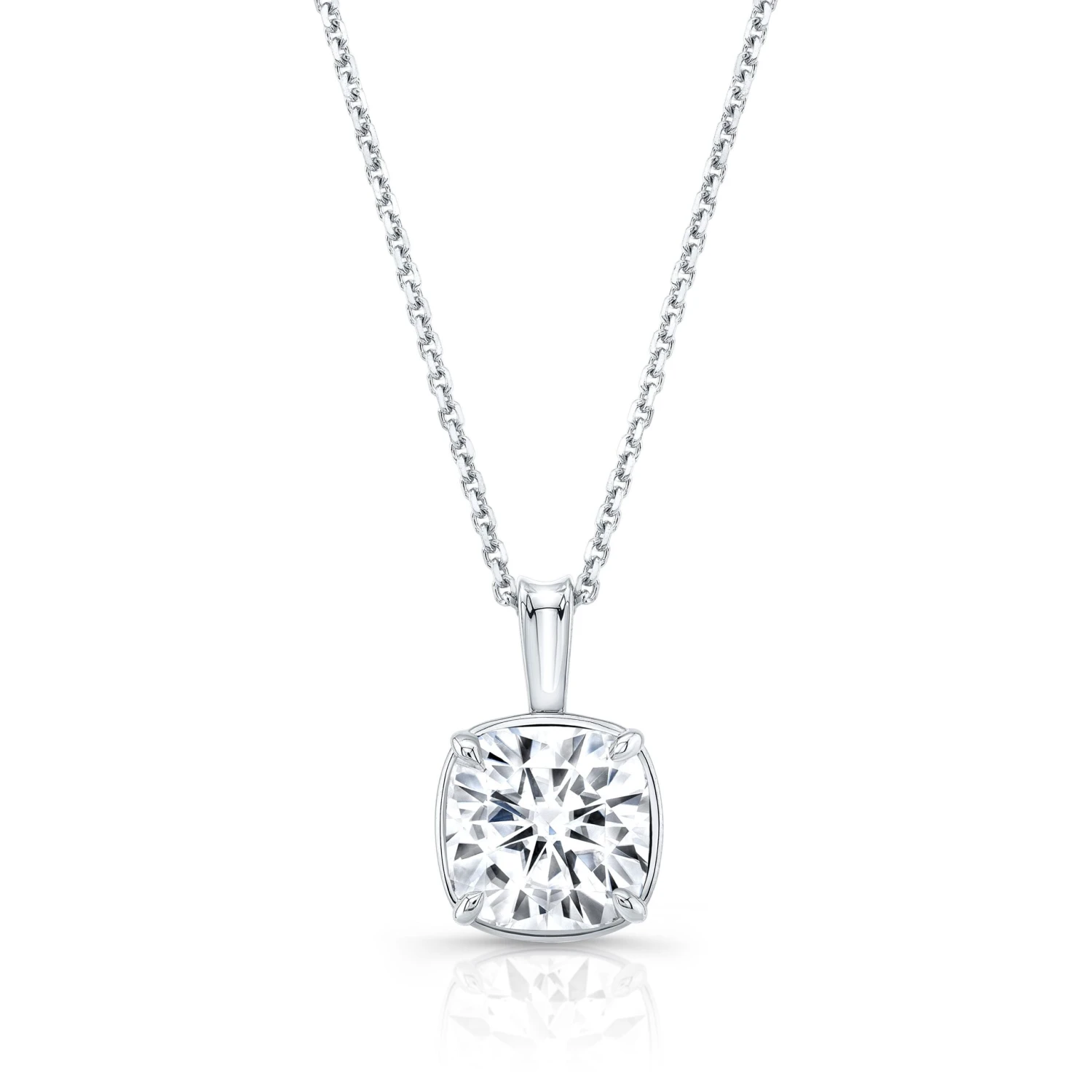 Cushion Diamond Solitaire Pendant In A 14k White Gold 4-prong Leaf Scroll Setting, 3ct. T.w. (hi, Si1-si2)