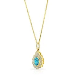 Blue Topaz Multi Gemstone And Diamond Teardrop Double Strand Necklace In 14k White Gold 1/3ctw