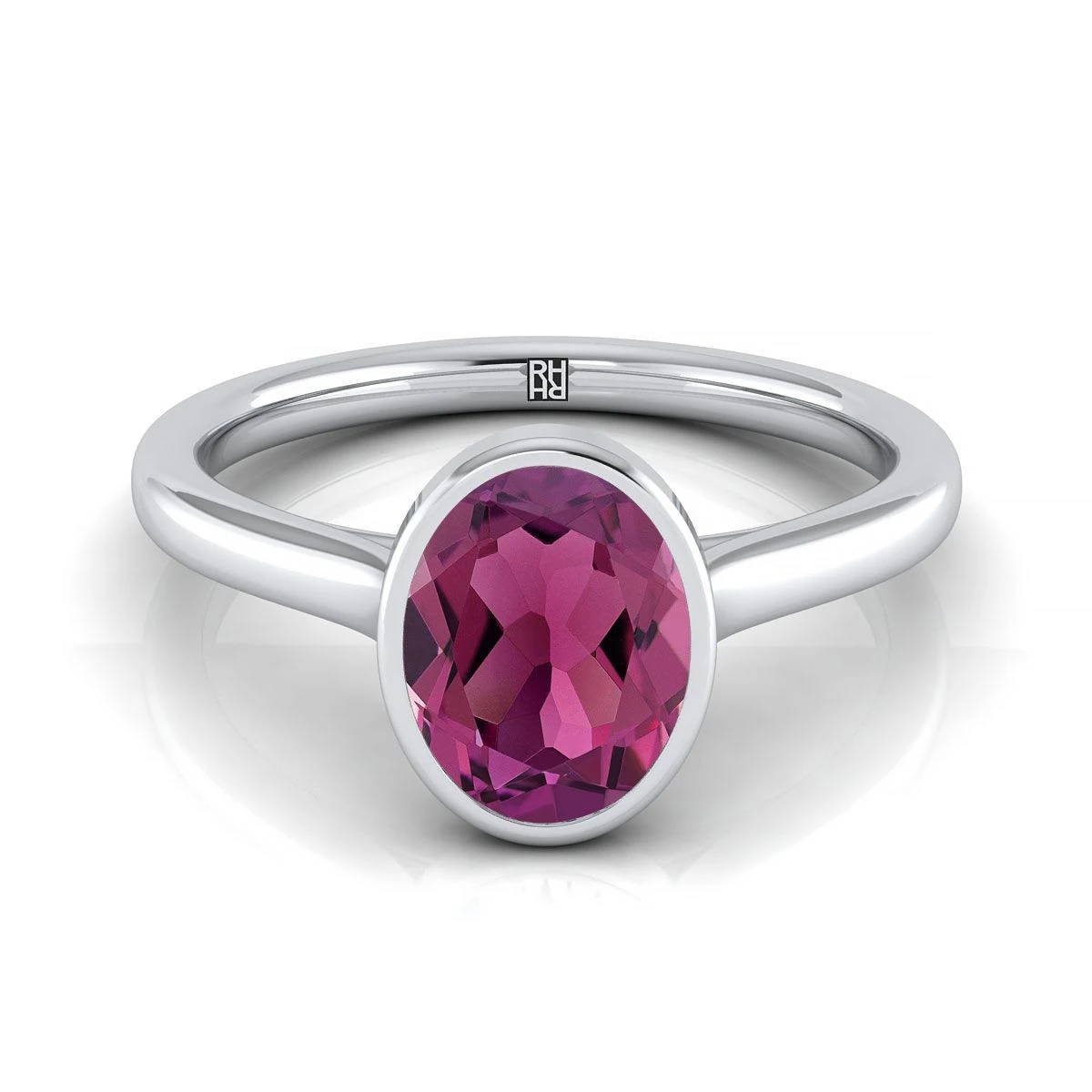 Platinum Oval Garnet Simple Bezel Solitaire Engagement Ring