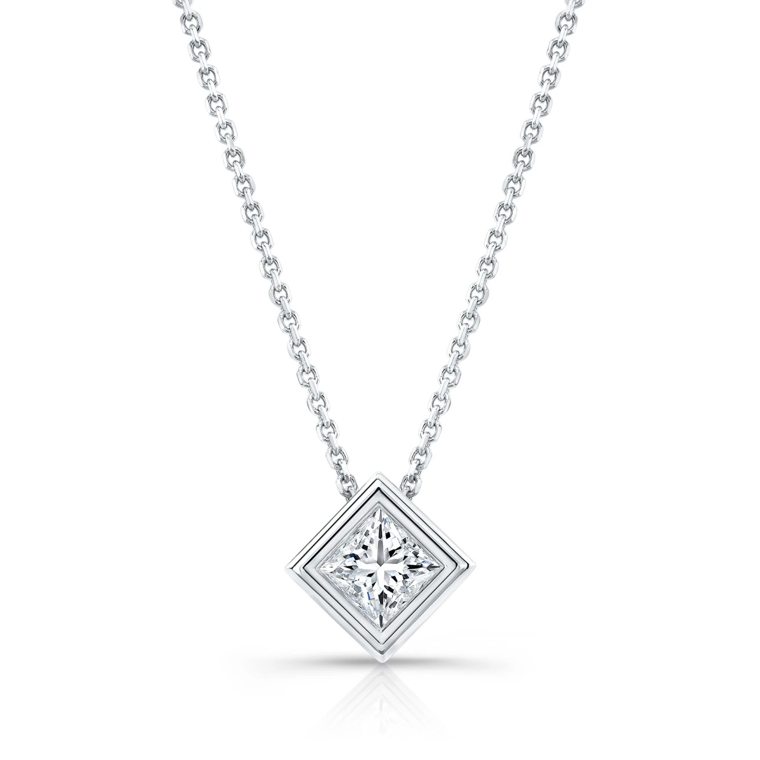 Princess Diamond Solitaire Pendant In A 14k White Gold Bezel Slide Setting, 0.4ct. T.w. (hi, Si1-si2)