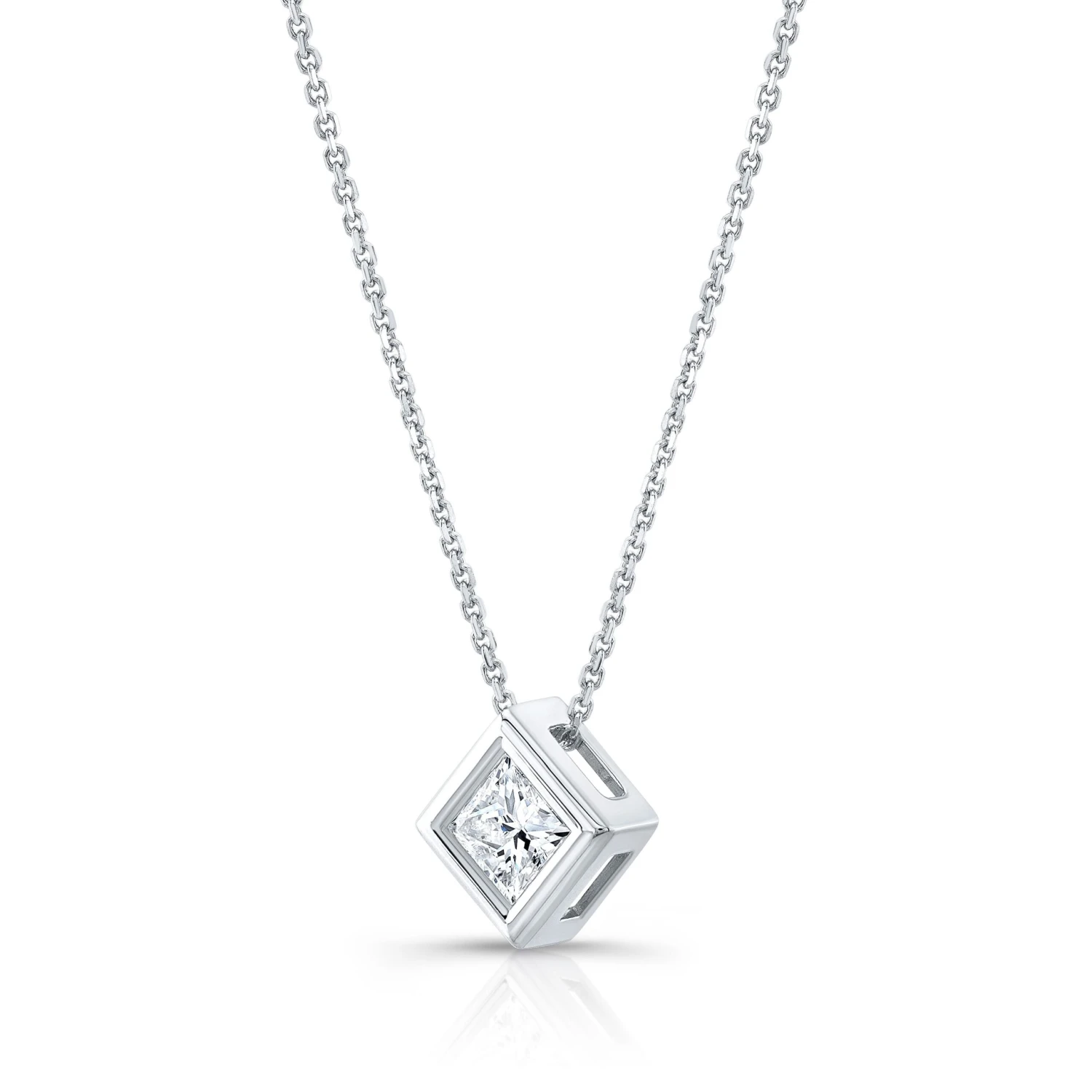 14k White Gold Solitaire Pendant With 1 Princess Shape Diamond Weighing 0.4 Carat On A 16 Inch Curb Chain