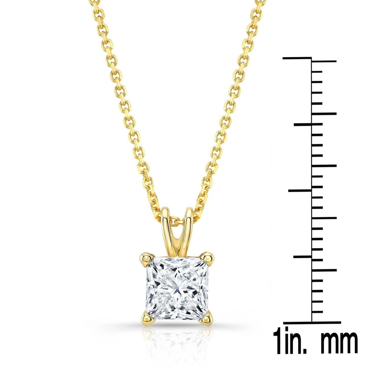 Princess Diamond Solitaire Pendant In A 14k Yellow Gold 4-prong Basket Setting, 1ct. T.w. (i, Vs2 Igi)