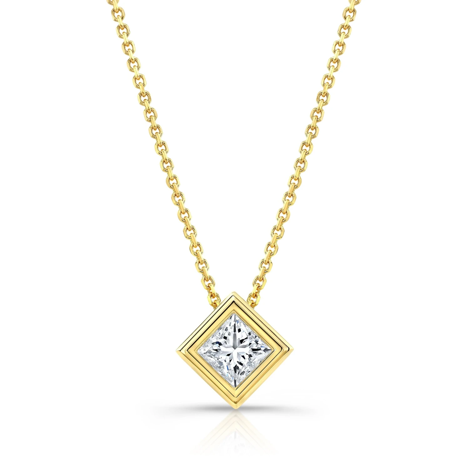 Princess Diamond Solitaire Pendant In A 14k Yellow Gold Bezel Slide Setting, 0.4ct. T.w. (hi, Si1-si2)