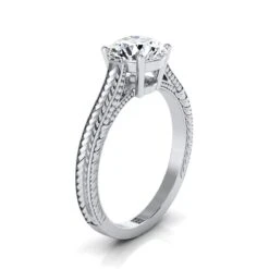 14K Yellow Gold Round Brilliant Emerald Pinched Comfort Fit Claw Prong Solitaire Engagement Ring