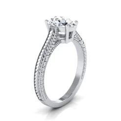 18K White Gold Oval Aquamarine Hand Engraved Vintage Cathedral Style Solitaire Engagement Ring