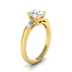 18K Yellow Gold Round Brilliant Emerald Pinched Comfort Fit Claw Prong Solitaire Engagement Ring