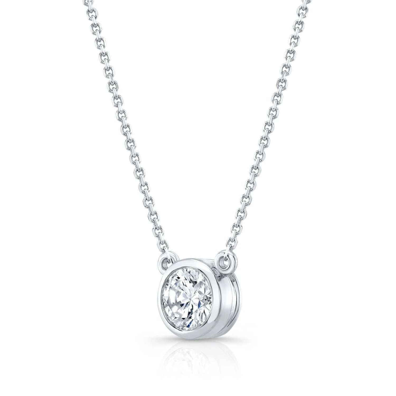 Round (full Cut) Diamond Solitaire Pendant In A 14k White Gold Bezel Centered Setting, 0.55ct. T.w. (hi, Si1-si2)